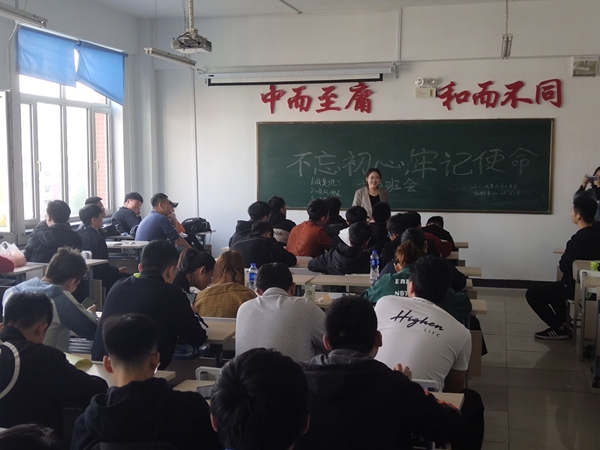 王珊珊老师说:我们学习“不忘初心,牢记使命,要联系学院的实际,为融入社会走进来:不忘初心,思考为何而来。为服务社会走出去:牢记使命,规划未来发展。那么,同学们的初心与使命又是什么哪?请同学们就我是谁?我从哪里来?我要怎么办?这三个问题进行思考。”之后三个班级的班长、团支书就此次会议进行了自己的阐述,与同学们分享了自己对于辅导员王珊珊老师所提出的三个问题的理解,劝导同学们要时刻谨记自己学生的身份,不要忘记当初自己为什么要选择上这所学校以及为什么要选择这个专业,更要认真思考自己将来想要过的生活。