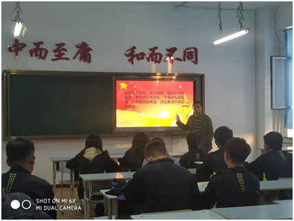 王连俊老师带领同学们学习了《习近平新时代中国特色社会主义思想学习纲要》,及党内政治生活准则,要求同学们用党的创新理论武装头脑,更加自觉地为实现新时代党的历史使命不懈奋斗。王连俊老师大声说道“开展不忘初心,牢记使命主题教育,铭记“为中国人民谋幸福,为中华民族谋复兴的“初心”和“使命”,是学习贯彻党的十九大精神的重要举措,是激励我们共产党人不断前进的根本动力。这段话振奋人心的话在同学们心中刻下了深深印记,让大家明确了党的建设发展目标与思想,树立了正确的价值观导向。