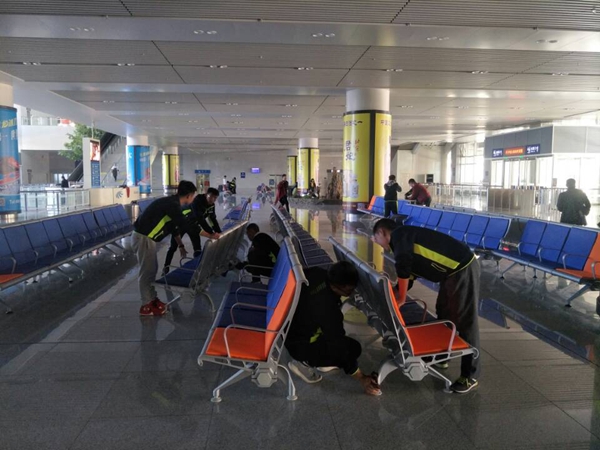 本着“干实事、扬新风、”的服务态度,领队王虹老师先是与火车站服务中心的经理进行了联系,了解到南站志愿服务的基本工作任务后,到大厅给大家分配了各自的工作:两个男生在一层出站口负责引导乘客出站,并负责给行人拿行李,阻止逆行乘客;两个女生在进站口负责配合安检人员进行行李的检查;王虹老师带领7名积极分子、发展对象等在站台附近辅助工作人员搬东西,并帮助行动不便的旅客把他们送到二楼服务中心候车室,剩余的学生清洗候车室的座椅、扫地、拖地、清理垃圾桶。在明确各自的职责后,大家立刻行动起来,将践行“不忘初心、牢记使命”的热情投入到了工作中。大家帮助旅客解决困难的同时不忘宣扬“不忘初心、牢记使命”的思想和无私奉献的志愿精神,党支部的活动受到了旅客们和工作人员的一致认可。