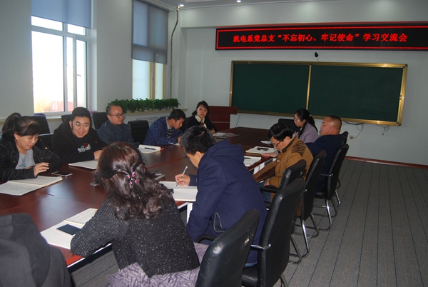 10月29日机电系党总支在图书馆608召开“不忘初心、牢记使命”学习交流会议,机电系党总支书记高爱利主持会议,全体党员参加。