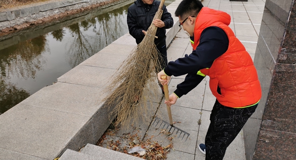 在学生党支部书记王虹老师的带领下,全体党员开始了对自己所负责的分担区进行了打扫,耙子,铲子在握,塑料袋在手。有的人捡垃圾,有的进行打扫落叶,分工明确,大家干的如火如荼,展现出了党员们积极向上的精神。全体党员在这冬天来临之际,劳动的热情十分的高涨,以劳动为荣,也乐在其中。经过几个小时的奋战,为学校营造了一个校园干净、整洁的工作环境;为同学们营造出了一个良好的学习范围。