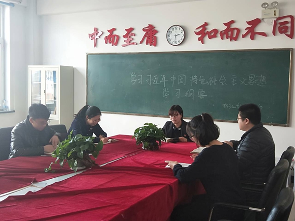 11月13日电气专业教师党支部在图514集中学习“习近平新时代中国特色社会主义思想学习纲要”第68-79页相关内容。