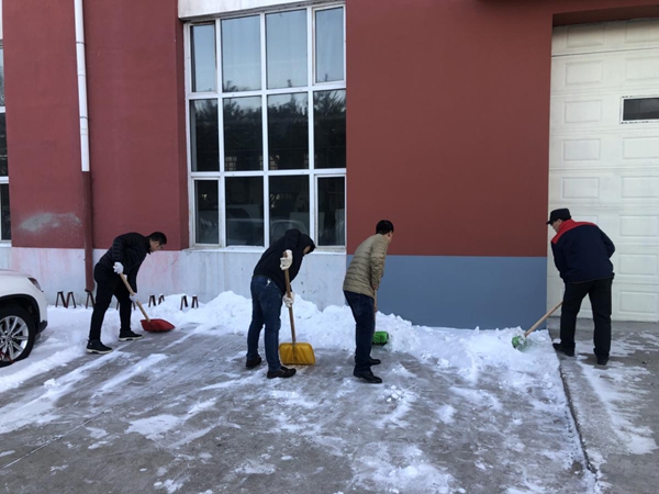 11月19日机械教师党支部的党员们利用中午休息时间来到了齐三机床,对齐三周边的积雪进行了清扫,虽然室外温度很低,清扫活动很累,但老师们的心里却是暖洋洋的。