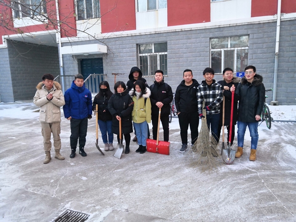 为了保证广大师生的出行安全,电气专业学生党支部组织全体党员及发展对象在支部书记王连俊老师的带领下在五公寓楼前开展了清雪活动。