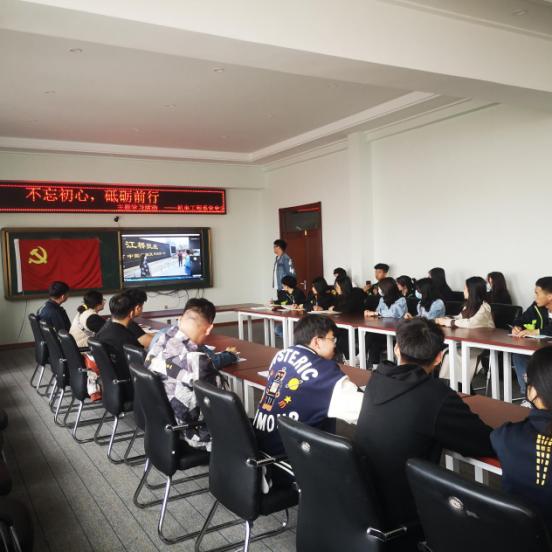 为迎接党的百年华诞,贯彻落实好“四史”的学习教育,4月1日下午15-17点机电工程系组织开展“不忘初心、砥砺前行”红色主题教育活动。本次活动分为线下和线上两部分。党总支书记甄彩霞组织全体党员教师到和平广场参观学习,追寻革命先驱的英雄足迹,缅怀革命先烈的丰功伟绩,坚定理想信仰,锤炼党性修养。学生党员和团员同步在图书馆608,通过腾讯会议观看直播。
