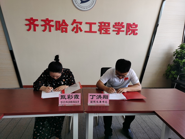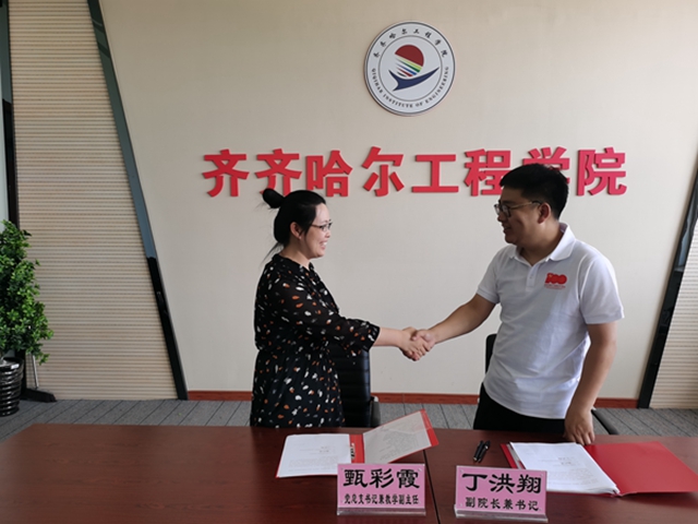 为进一步落实新时代党建工作的新要求,拓展校企合作新领域,6月22日,中共机电工程系党总支与中共北方华安工业集团有限公司特种弹药研究院党支部在图书馆608举行“校企党建共建实践基地”签约仪式。机电系党总支书记甄彩霞、中共北方华安工业集团有限公司特种弹药研究院党支部书记丁洪翔在“校企党建共建实践基地”协议书上签字。
