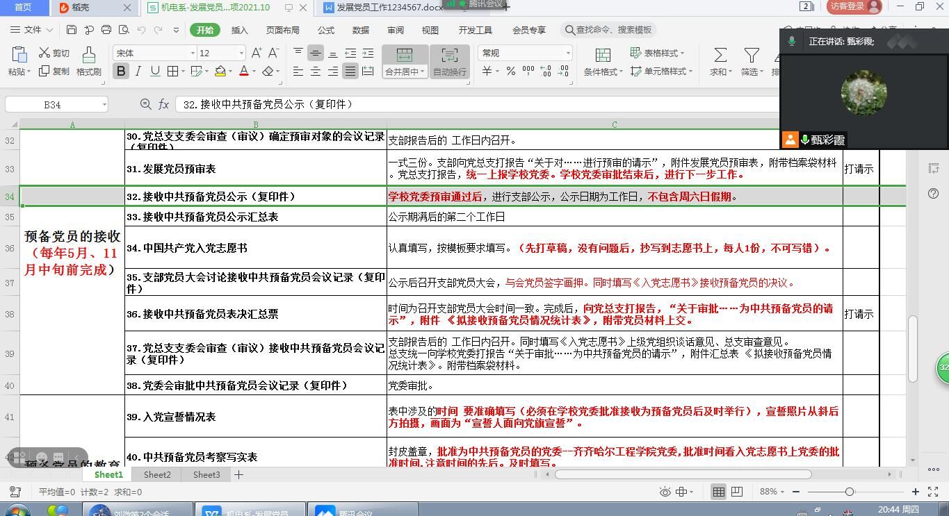 为认真做好机电系发展党员工作,规范发展党员工作程序,进一步提升党务工作者的业务能力,机电系党总支书记甄彩霞于11月4日晚通过腾讯会议召开了党总支扩大会议,结合发展党员流程和发展党员工作进行了专题培训,机电系党总支成员、各党支部书记、组织委员参加会议。
