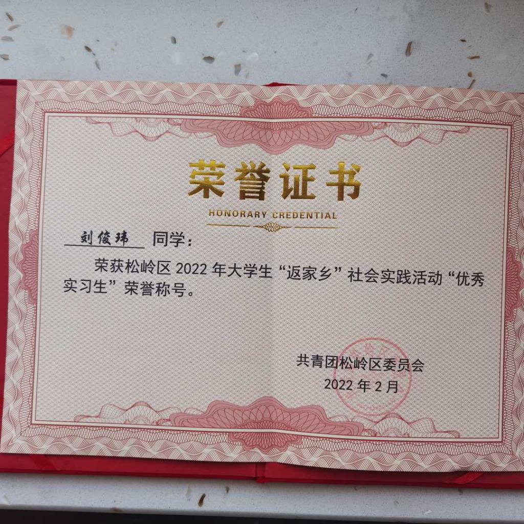 机械201班刘俊玮同学,于2022年1月,参加大兴安岭地区松岭区返乡大学生实习,于2022年3月结业,期满两个月,该同学在小杨气镇政府实习期间,担任团委书记助理,工作重点在,管理智慧团建,参加团活,疫情卡口站岗等,表现优秀。