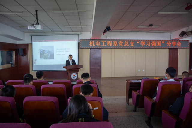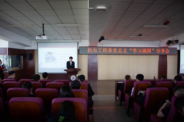 为提高机电系党员使用“学习强国”平台的积极性,推进习近平新时代中国特色社会主义思想的学习,机电系党总支5月31日在图书馆501召开“学习强国”学习分享会,会议由机械183郭旭主持,机电系全体党员80人参加会议。
