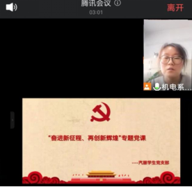 6月17日上午九点,汽服学生党支部在腾讯会议召开“奋进新征程、再创新辉煌”专题党课,本次党课由汽服学生党支部书记邓敏主讲,汽服学生党支部全体党员共同学习。