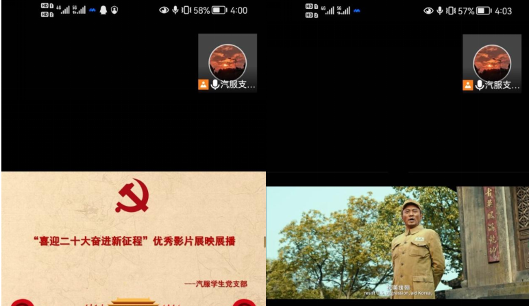 为迎接党的二十大胜利召开,我省开展“喜迎二十大·奋进新征程”优秀影片展映展播活动。汽服学生党支部为了推动党员党史学习教育常态化长效化,在7月5日举行“喜迎二十大奋进新征程”优秀影片展播活动,本次活动在腾讯会议举行,汽服学生党支部全体党员观看电影《长津湖》。