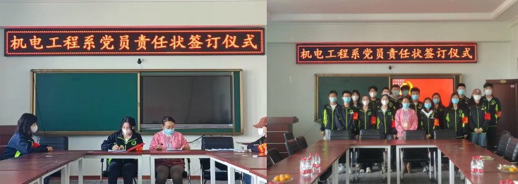 为进一步提高学生党员的能力素质,充分发挥学生党员的先锋模范作用。9月28日机电工程系党总支书记王丽萍老师于图书馆608教室为机电系全体党员开展了学生党员责任状签订会,此次会议由电气本191班侯冰同学主持进行。