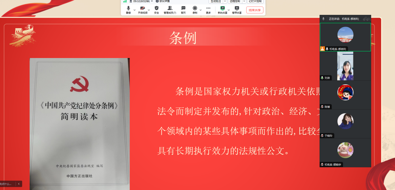 7月10日下午,机械专业教师党支部开展了一次《中国共产党纪律处分条例》学习会议,此次会议旨在深化对党的纪律规定的理解,确保党的纪律严明在基层党组织得到全面贯彻落实。