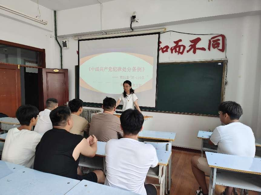 7月9日,机械专业学生党支部在图书馆703组织学习《中国共产党纪律处分条例》第91条至第110条。