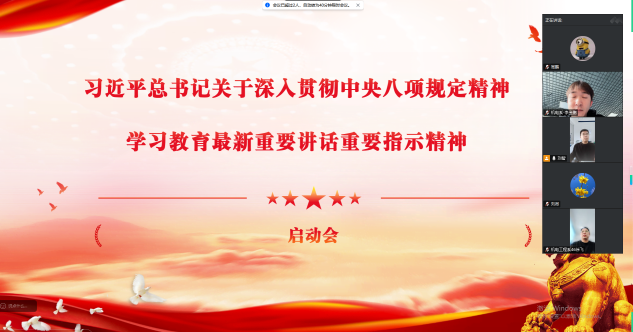 3月31日,电气工程及其自动化专业教师党支部学习“中央八项规定精神”启动会通过腾讯会议成功举行。本次会议由电气专业教师党支部书记刘智主持,全体支部教师党员共同参与,旨在通过深入学习,进一步加强党员的纪律意识和作风建设。