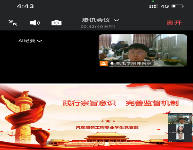 为强化教师党员践行服务意识,提升服务师生能力,6月9日,汽服学生党支部书记郭兴宇组织开展“践行宗旨意识”学习活动,支部教师党员参加。