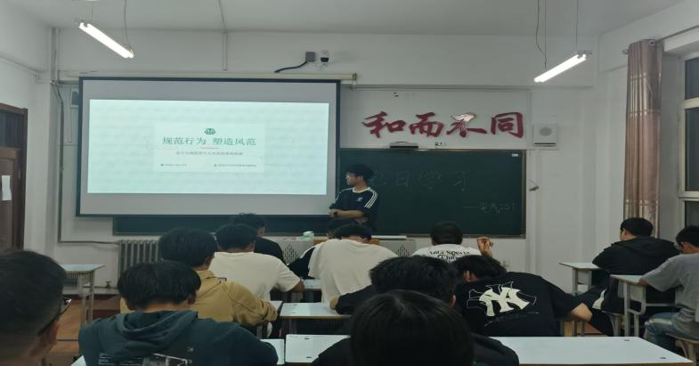 10月20日晚上,电气251班级“规范行为 塑造风范”主题班会在图书馆710教室举行,党员学长李文博和袁薇云共同担任主讲,以“党员示范+朋辈引领的形式推动行为规范教育走深走实。