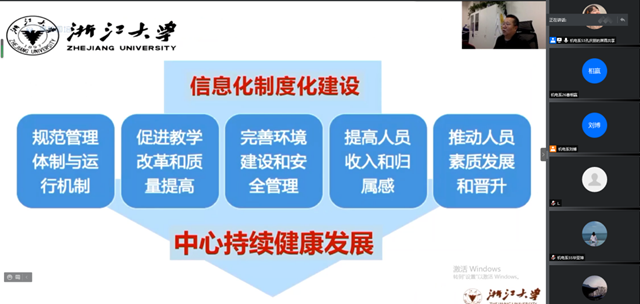 郝永胜教授向大家介绍一流本科课程中的虚拟仿真项目建设和共享。其中包括:1.国家级实验教学师范中心建设和推广;2.虚拟仿真实验项目资源和金课建设;3.实验项目中学生自主学习能力培养;4.虚拟现实(VR)技术在实验项目中的应用和资源利用;5.校企合作人才培养模式的改革与实践; 施芝元教授强调高校实验平台应对“双一流”建设思考与实践。其中包括建设“双一流”对高校实验室提出的挑战,国内高校实验室的基本情况及存在的问题以及应对“双一流”建设的思考与实践。