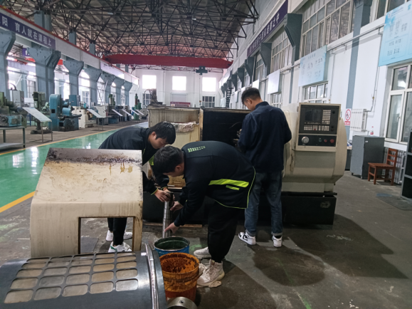 为迎接我校第二十个第三学期,提高齐三机床的加工产能,同时探索校企合作双元育人,培养专业学长,机电工程系聘请齐二机床的岗位技术能手,车间技术员任伟为学生进行技能培训,指导学生对齐三机床有限公司的型号CAK40100V1等6台数控卧式车床进行大修、保养。