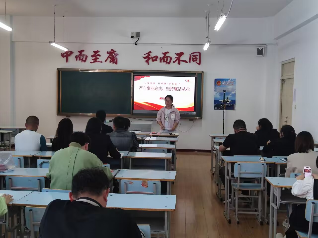 2023年中秋节、国庆节将至,为深入贯彻落实中央八项规定精神,持之以恒纠正“四风”,在校园内营造风清气正的节日氛围,9月26日下午,机电工程系党总支书记甄彩霞,在系例会上组织全体教师学习了“严守事业底线,坚持廉洁从业”相关内容。