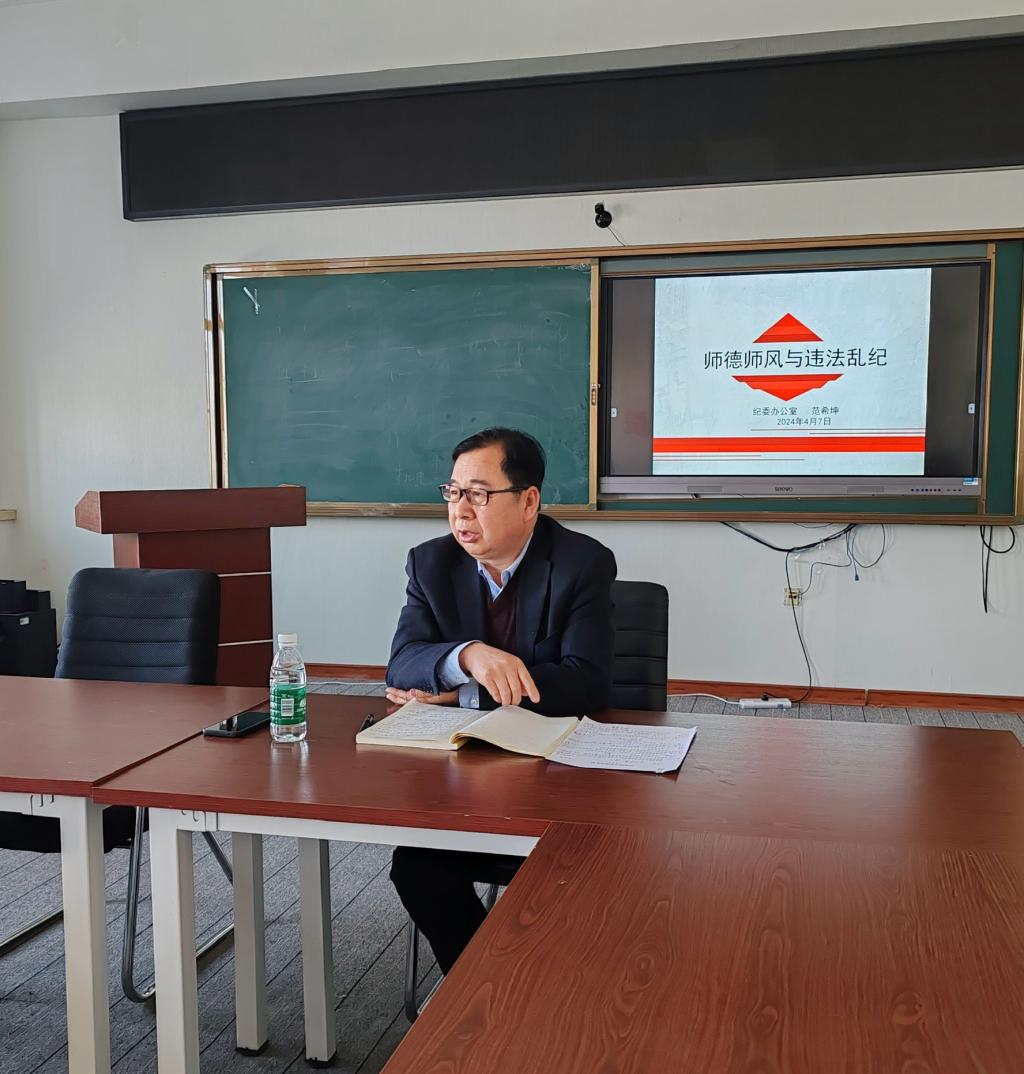 为了加强辅导员的职业素养,明确师德师风的重要性,同时强化辅导员对法律法规的遵守意识,营造风清气正的校园环境。4月7日,在图608机电工程系邀请纪委部门的范希坤老师开展了关于《师德师风与违法乱纪》的培训,全体辅导员参加。