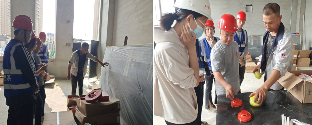 校园北区机电设备运维师资团队于7月19日下午进入北区施工现场进行调研学习,消防培训组内三位教师带领师资班学员进入了施工现场,在现场消防工程师的陪同下学习消防设备安装、运维、检修知识。