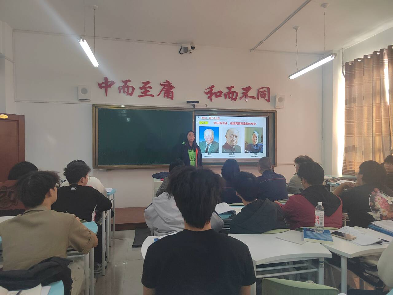 在讲授“静力学公理”这一课点时,浦老师巧妙地引入了中国力学界的杰出代表——“三钱”的事迹。她重点讲述了钱伟长先生“我没有专业,国家需要就是我的专业”的感人故事,将科学家胸怀祖国、服务人民的崇高精神与力学原理有机融合。这一生动讲述引发了在场学生的深刻思考与强烈共鸣,课堂气氛十分热烈。