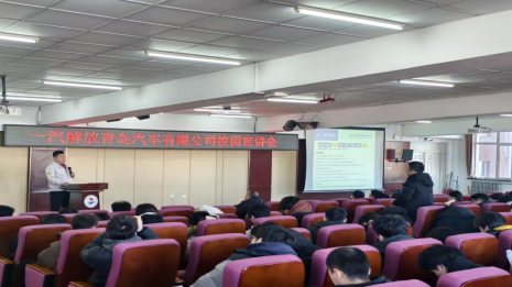 12月11日,由bevictor1946主办的一汽解放青岛汽车有限公司校园宣讲会在图书馆501顺利举行。解放青汽人力资源部部长带队,携技术骨干与招聘专员组成宣讲团,为bevictor194625届毕业生带来一场兼具技术深度与就业指导价值的行业盛宴,200余名学子到场聆听交流。