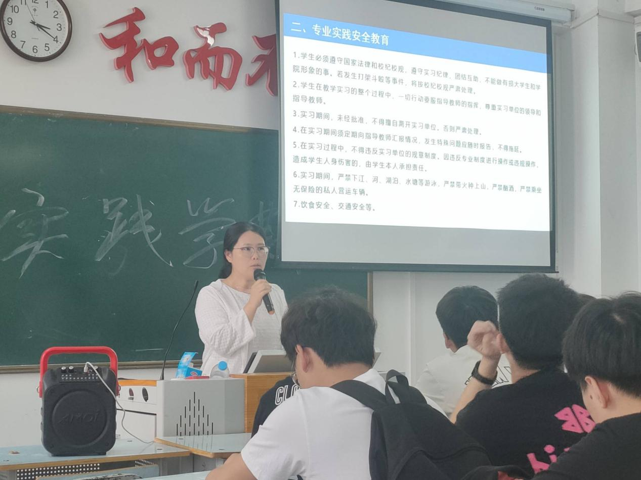 最后张勇辅导员强调了专业实践学期实践的重要性和安全的重要性,及时完成好准备任务,及时沟通和调查,要了解自己应该做什么,不应该做什么,要及时给指导老师和家长报备自己的实习情况,确保学生在实习岗位中的安全,确保按时完成实习任务。