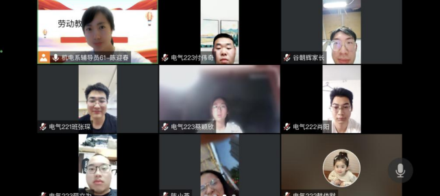 7月13日,电气专业辅导员老师陈迎春在腾讯会议召开电气22级、23级专业实践学期劳动教育会,此次会议旨在强化学生们的劳动观念,提高实践操作能力。