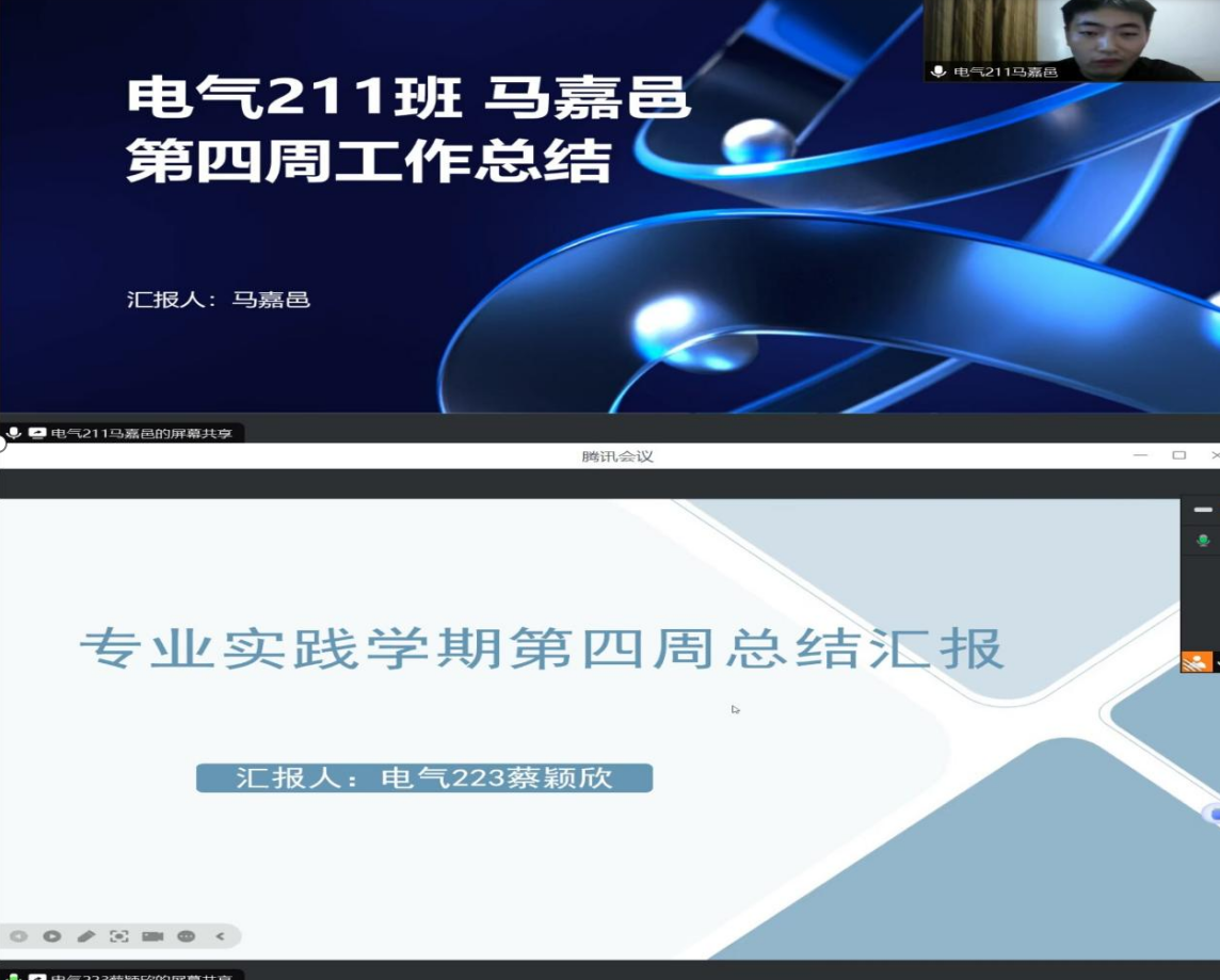 为了全面了解并总结学生在社会实践学期实习中的进展与成果,机电工程系电气工程及其自动化专业汝晓艳老师,通过腾讯会议平台,召开社会实践学期实习第四周的总结会议。