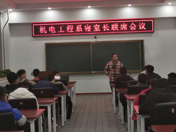 11月12日晚,公寓指导教师王连俊、辅导员白士元在图书馆608召开了机电工程系寝室长联席会议,参加本次会议有机电系4公寓、5公寓、11公寓寝室长代表和五公寓管理委员会全体人员。