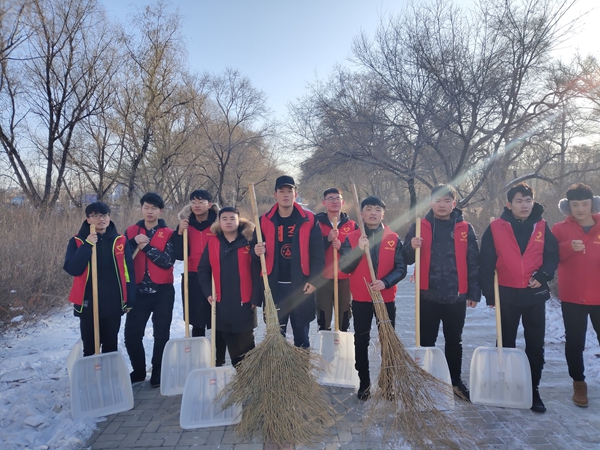为有效推动文明城区和学习型社区建设,11月28日,机电系机械本161班组织多名同学积极参加社区学校共同建设志愿者活动,本次活动为机械本161班学生党员、积极分子、团干部等十余人,他们共同来到齐齐哈尔市南郊社区,为了防止天气原因给道路带来的不便,与社区负责人共同清扫街道积雪活动,工作期间同学们都非常辛苦,耐着天气的严寒,在刺骨的冷风中埋头苦干,很快就把道路两侧的积雪清理的非常干净,一缕阳光洒在他们头顶上为他们增加了一丝色彩。