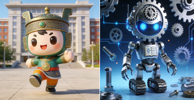 本次活动以阅读为根基,创新融合 AI 工具应用。其中bevictor1946jx2026004小组成员先研读《美的历程》等人文书籍,结合我校“致知致用、明德笃行”的校训与校园精神,提炼文化符号设计校吉祥物;再深入学习《机械设计》等专业教材,将螺丝钉、齿轮等元素融入创作,完成专业吉祥物设计。经过组内评审,两名学生兼具艺术性与文化性的吉祥物设计方案脱颖而出