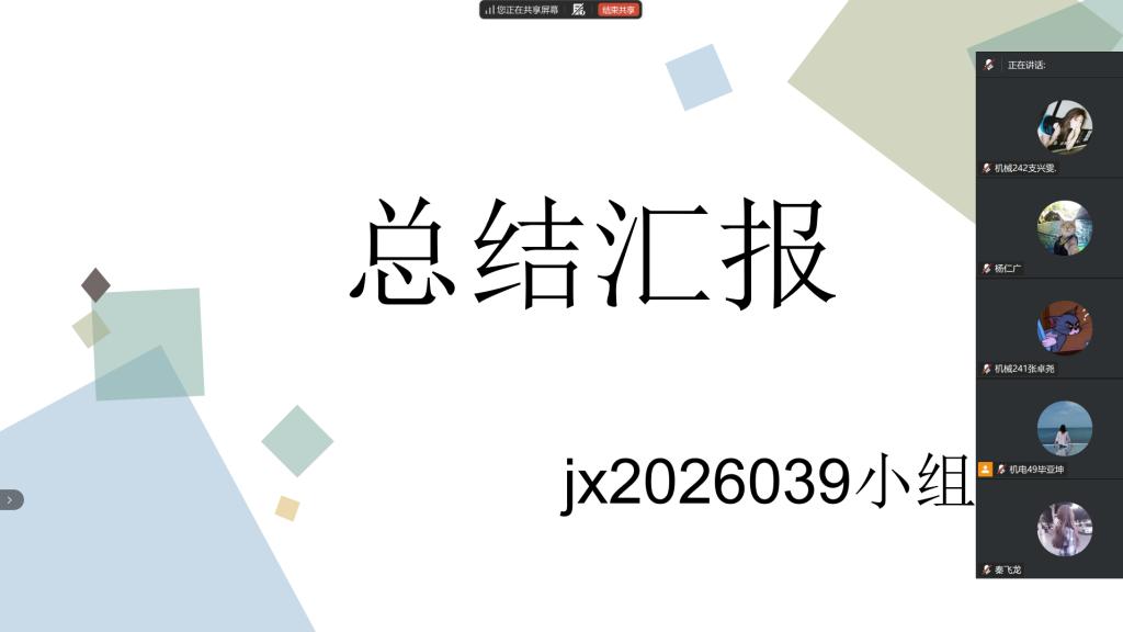 2026年2月4日晚上19时00分,指导教师毕亚坤召开社会实践学期第四周总结汇报会,全体学生参加线上腾讯会议。会上,实践小组jx2026039做第四周总结汇报。
