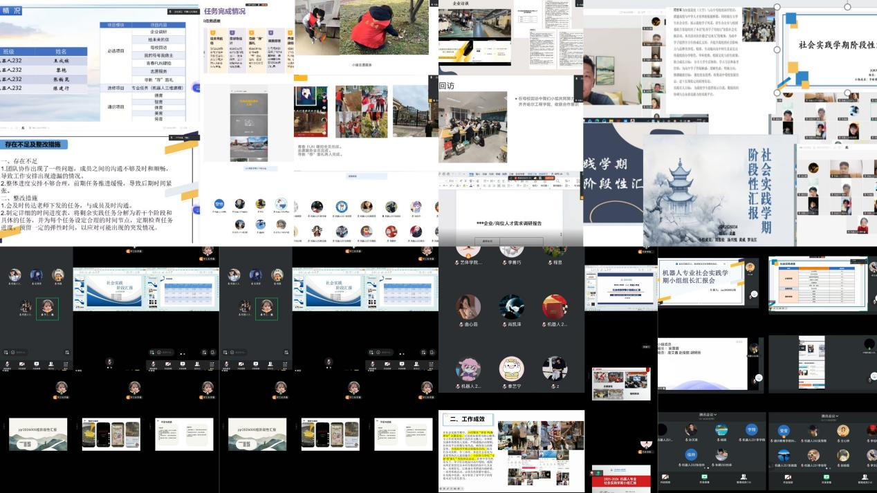 2月1日—5日期间为扎实推进社会实践学期各项工作,及时梳理实践成果、查摆问题不足、明晰后续方向,王虹老师组织机器人专业社会实践学期小组,组织各位指导老师以线上腾讯会议形式开展社会实践阶段性小组汇报。各实践小组围绕必选实践项目、五大通识培育任务,逐一汇报进展、分享实践感悟。