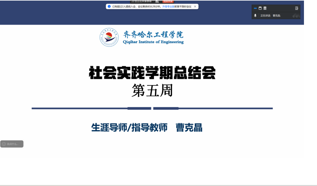 为扎实推进2025-2026学年社会实践学期各项任务落地见效,及时解决学生实践后期推进中的重点难点问题,做好成果打磨与收尾筹备工作,指导教师曹克晶于2月7日召开第五周社会实践专题指导会。