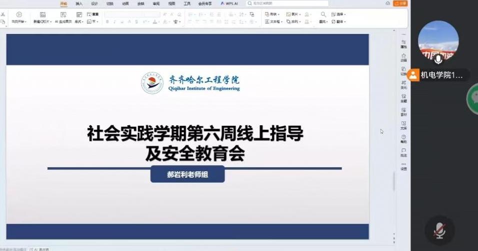 会上,郝岩利老师先梳理了实践第六周的核心任务,针对机电专业实践收尾阶段的成果整理给出指导;随后结合机电行业实践特点,讲解了设备操作、现场作业、交通出行等方面的安全规范,通过典型案例强调安全风险防控的重要性。