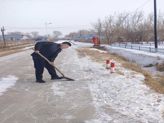 活动中,同学们不畏严寒、分工协作,手持铁锹、扫帚等工具清理道路积雪与结冰。学生们配合默契、干劲十足,迅速将社区道路清扫干净,切实保障了居民出行安全与便利。