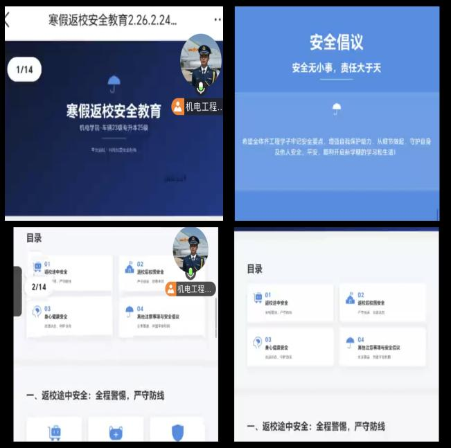 通过此次会议,我深刻认识到安全是校园生活的底线,更是学业顺利开展的前提。徐老师细致全面的讲解,让我对返校途中可能遇到的风险有了更清晰的认识,也对返校后的行为规范有了更明确的方向。作为一名车辆工程专业学生,我将严格遵守学校各项规章制度,从自身做起,从小事做起,切实提高安全防范意识,以积极饱满的状态迎接新学期的挑战。安全无小事,责任大于天,愿我们共同守护平安校园,在新学期收获成长与进步。