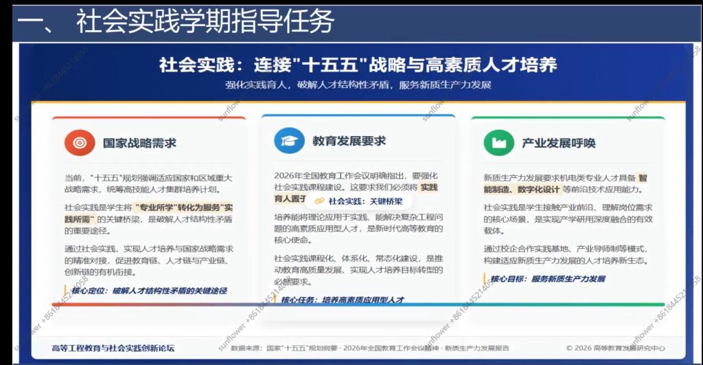 企业调研深入行业,明晰人才需求;母校回访搭建桥梁,传递青春能量;志愿服务形式多样,彰显青年担当;“给未来的信”明确职业方向。同时,五大通识培育融入实践,实现全面发展。生涯导师精准点评,指出调研深度、成果整理等问题并给出建议。王虹老师强调,要以汇报为契机优化方案,深化调研、丰富回访、提升服务,推动通识与实践深度融合。
