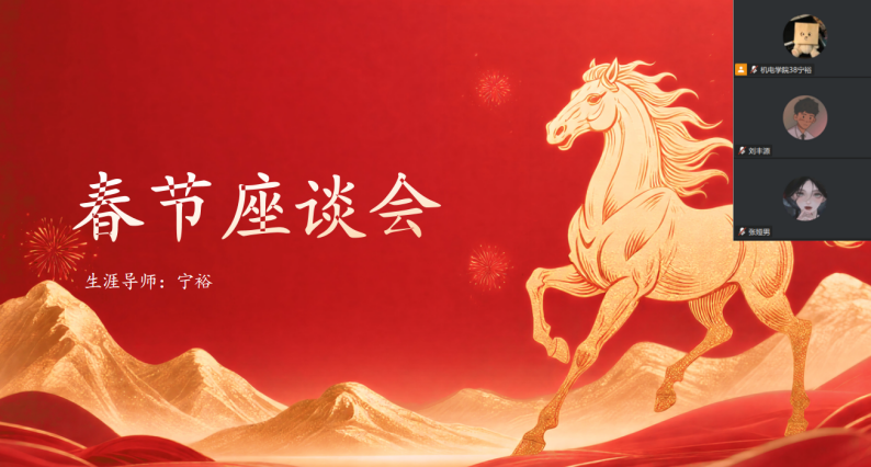 此次线上春节座谈会拉近了师生距离,传递了关怀与温暖,有效凝聚思想共识,让学子在温情陪伴中度过充实假期,以饱满姿态迎接新学期的到来。
