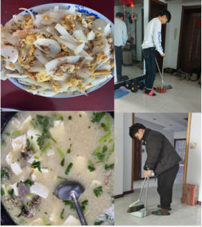 2020年1月18日,GY-071小组成员在第四学期期间,各自展开感恩实践活动,帮父母做家务打扫卫生、做一桌饭菜来减轻父母的生活、工作压力。