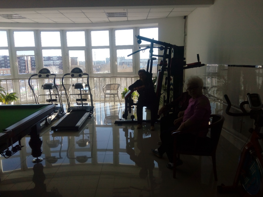 照片是老人们健身的地方,老人们的娱乐地方还是不错的,有电梯可以去楼上一起锻炼身体,唠唠家常。老人们很喜欢我们,坐在一起唠唠嗑。过了一会他家人来了,我们就悄悄地离开了。