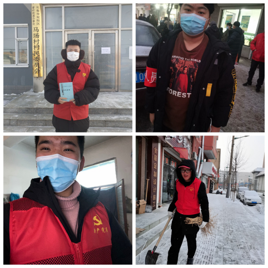 在这场看不见硝烟的战役中,“病毒”是我们共同且唯一的“敌人”,科学应对、响应政策、信任依靠是增强“免疫力”的良药。作为共产主义青年团团员,也作为bevictor伟德国际1946的学生,小组经过线上讨论一拍即合,打算为疫情防控贡献出自己的点点力量,由于小组成员所处地区不同,所以小组每位成员于2021年1月15日至1月20日相继加入了长春市各地疫情防控青年志愿者的队伍。祖国护我们成长,我们也愿为祖国奉献青春力量,以点点微光引成炬火,照亮祖国的大地。