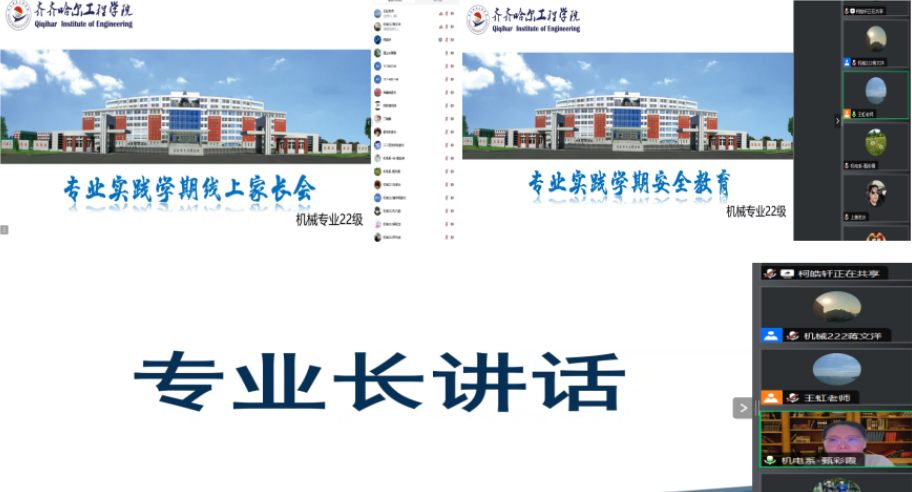 机械专业实践学期机械专业22级于2024年7月3日由辅导员老师王虹和专业长甄彩霞开展机械专业22级线上家长会暨安全教育。本次会议为了使家长和同学们了解时间学期的专业安排和实习的目的和意义,确保实践学期的顺利进行。