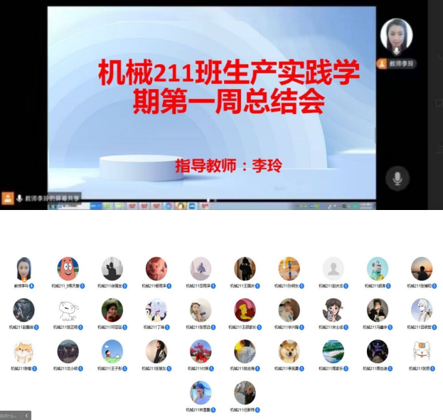 为了帮助学生更好地适应专业实践学期的实习生活,明确实习目标,提升实习质量,保证专业实践学期顺利进行,机械211班指导老师李玲老师于7月1日晚线上组织召开机械211班第一周生产实习总结会议。