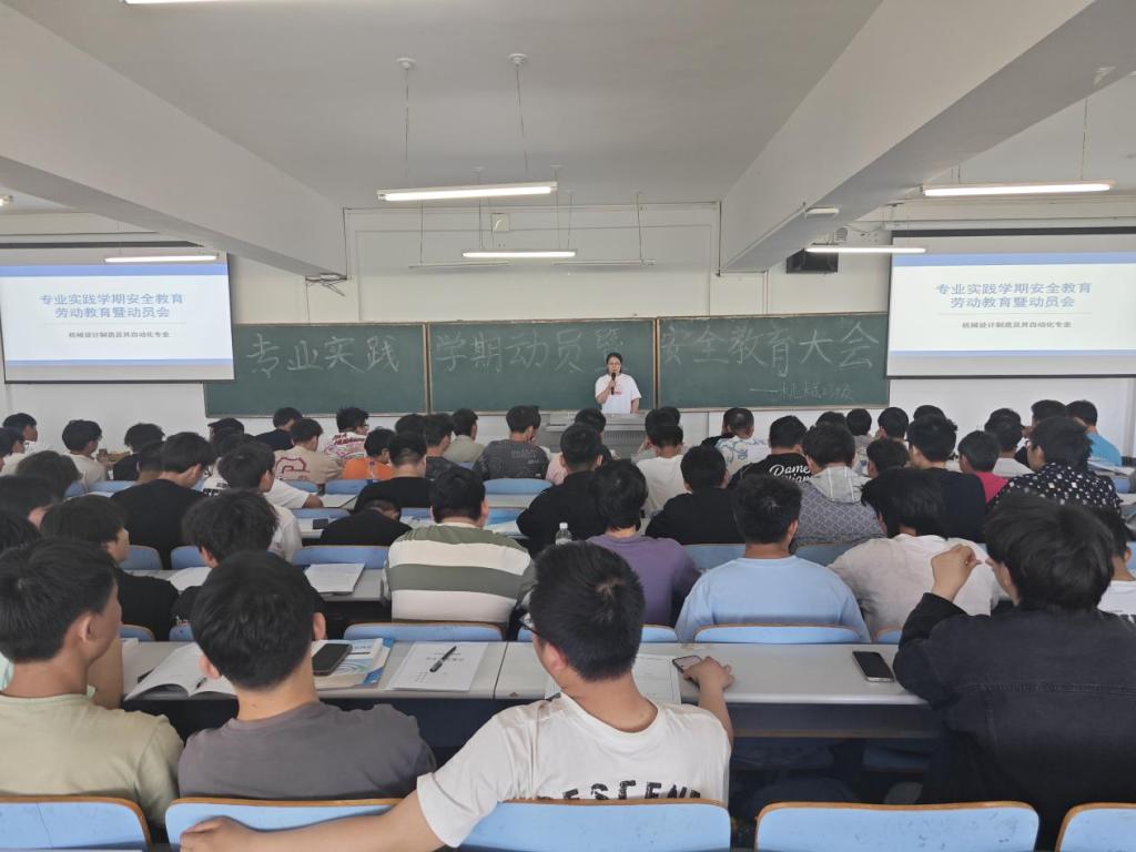 6月7日,机械专业辅导员老师肖璐组织机械23级全体学生在图201郑重召开了实践学期暨安全教育大会。此次大会由辅导员老师肖璐主持,并邀请了机械专业专业长甄彩霞老师为学生们讲解专业实践学期相关事宜,机械23级全体学生参加。本次大会旨在加强机械23级学生的实践能力和安全意识,确保即将到来的专业实践学期能够安全、有序、高效地进行。