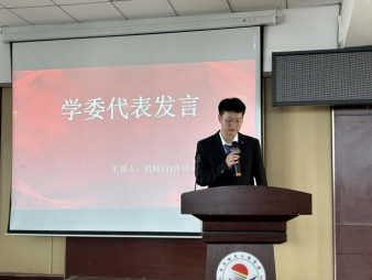 其次,学委代表机械231班佟佳兴同学针对如何加强学风建设发表讲话,学风建设需要教、学、管三管齐下,而且必须长期坚持不懈,持之以恒各班召开主题班会,使学风建设入脑入耳,从而深入到各个同学之中,营造良好的学习氛围,为建立学风建设的长效机制打基础。以个体带动整体,抓好全学院优良学风的形成。以评优为契机,感染教育全体学生。把学风建设和系里其他工作密切结合,使学风建设渗透到教学、学生的日常工作中,并且不断深入开展优良学风达标班活动。
