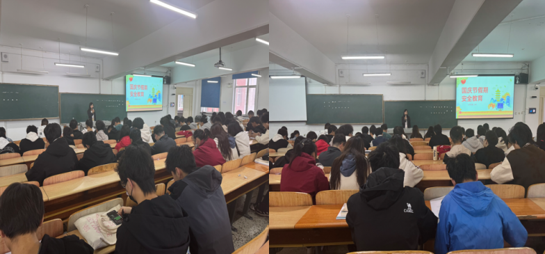 国庆假期在即,为做好学生安全教育管理工作,引导学生树立安全防范意识,确保学生能够度过一个安全、愉快的假期,9月30日,辅导员老师陈迎春对电气22级23级学生开展了国庆假期安全教育。